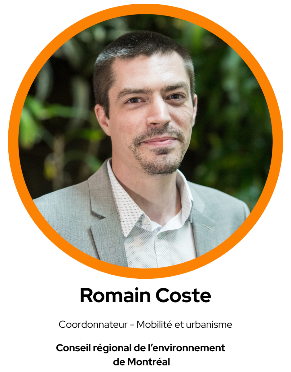 Romain Coste, du Conseil régional de l’environnement de Montréal, abordera les principaux défis et solutions à mettre en œuvre sur les aires de stationnement, notamment concernant le transport actif, à travers un aperçu du système d'évaluation de la certification Stationnement écoresponsable, proposée par le CRE-Montréal aux propriétaires de stationnements depuis 2017.